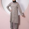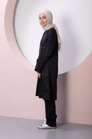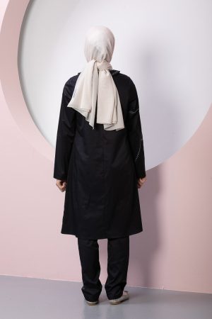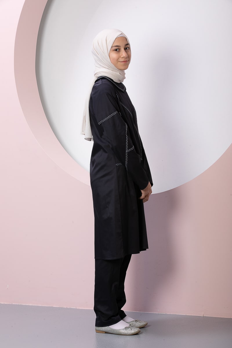 Product Features: Our children’s hijab double set alara model dress has special stitching, gather detail, slit detail, and elastic at the back. The trouser belt is elastic.