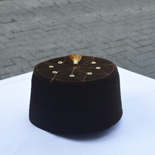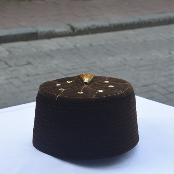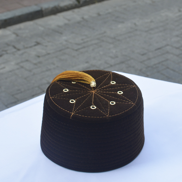 Moulded Turban Skullcap With Holes and Tassels Brown