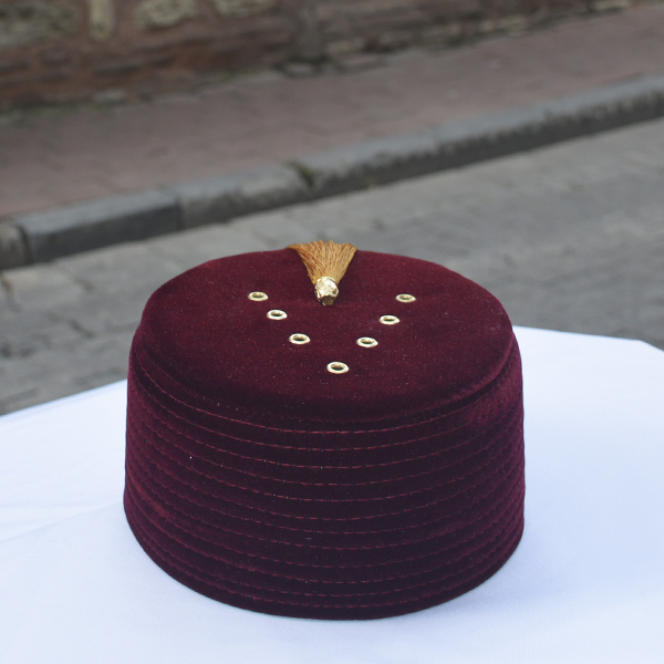Mold Turban With Holes, Tasseled Skullcap Fez Claret Red