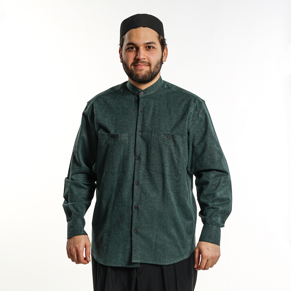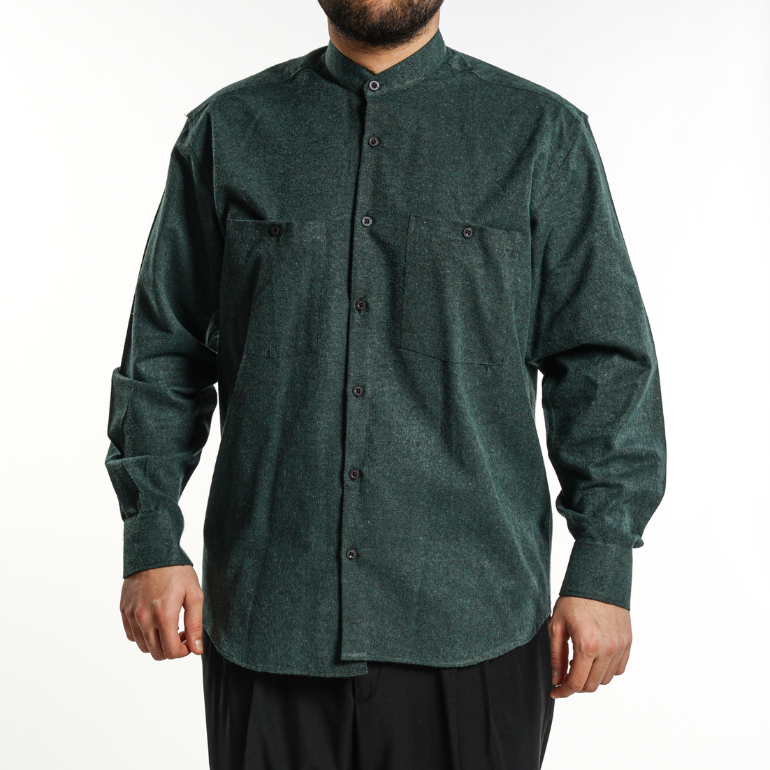 Shirt Stand-up Collar 2 Pocket Dark Green Winter